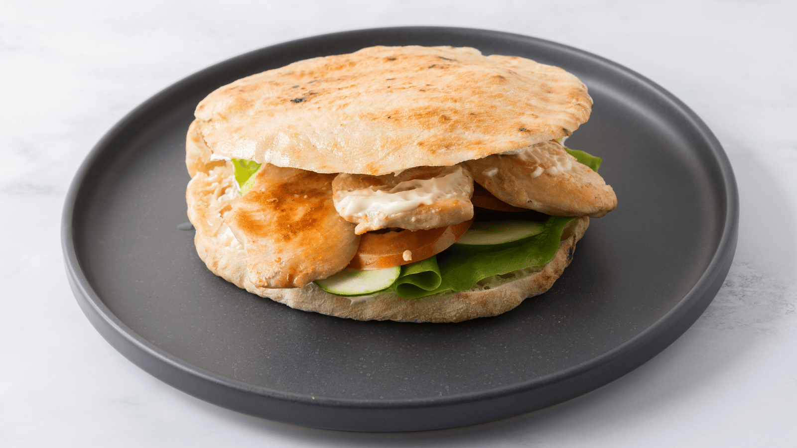 Pilece belo, somun, pavlaka, majonez, krastavac, paradajz, salata