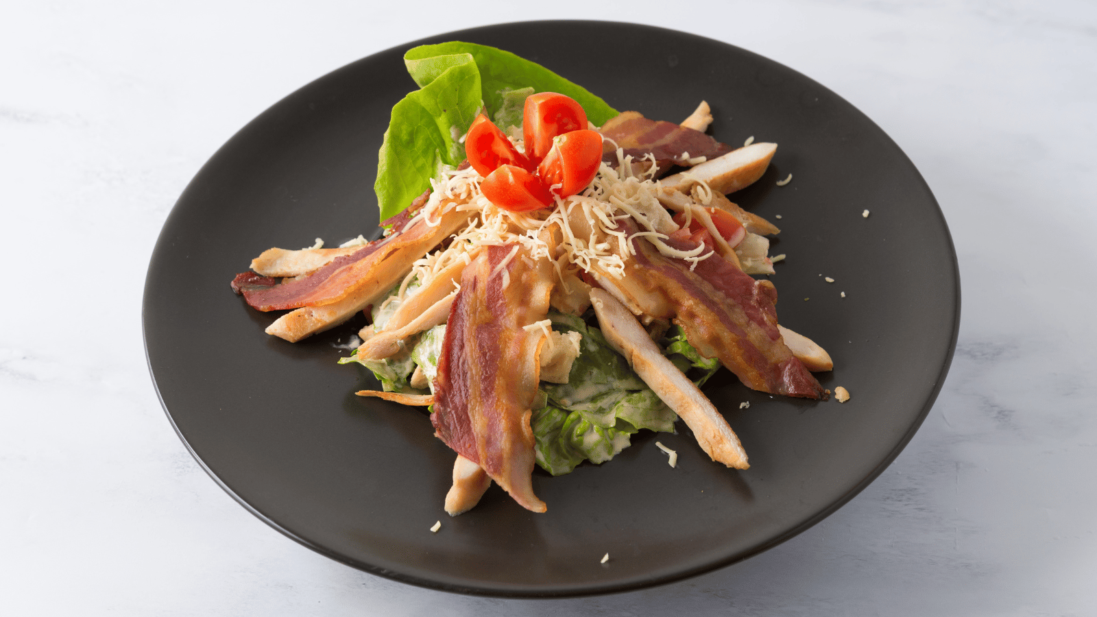 Pileća belo meso, iceberg salata, crvena paprika, paradajz, krastavac, majonez, kis. krastavac, hleb