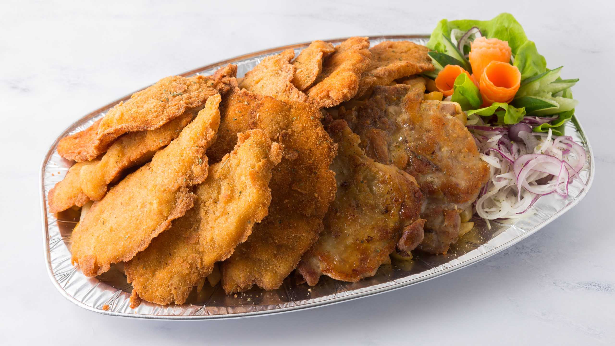 1kg pohovanog belog mesa, 400g bataka i 1kg pečenih krompira