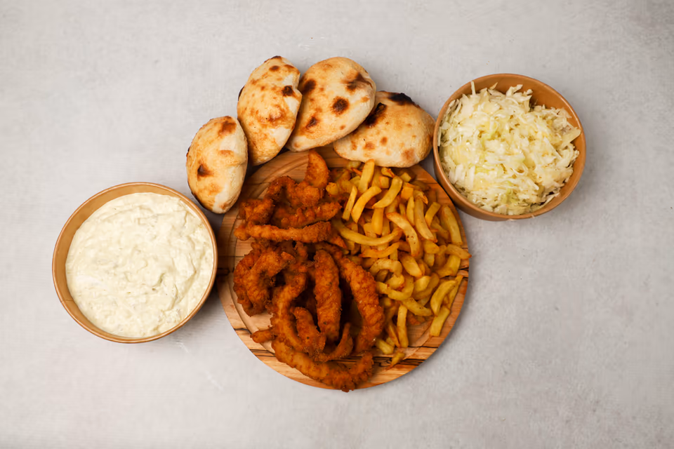 Pileće meso, pomfrit, kupus salata, tartar sos
